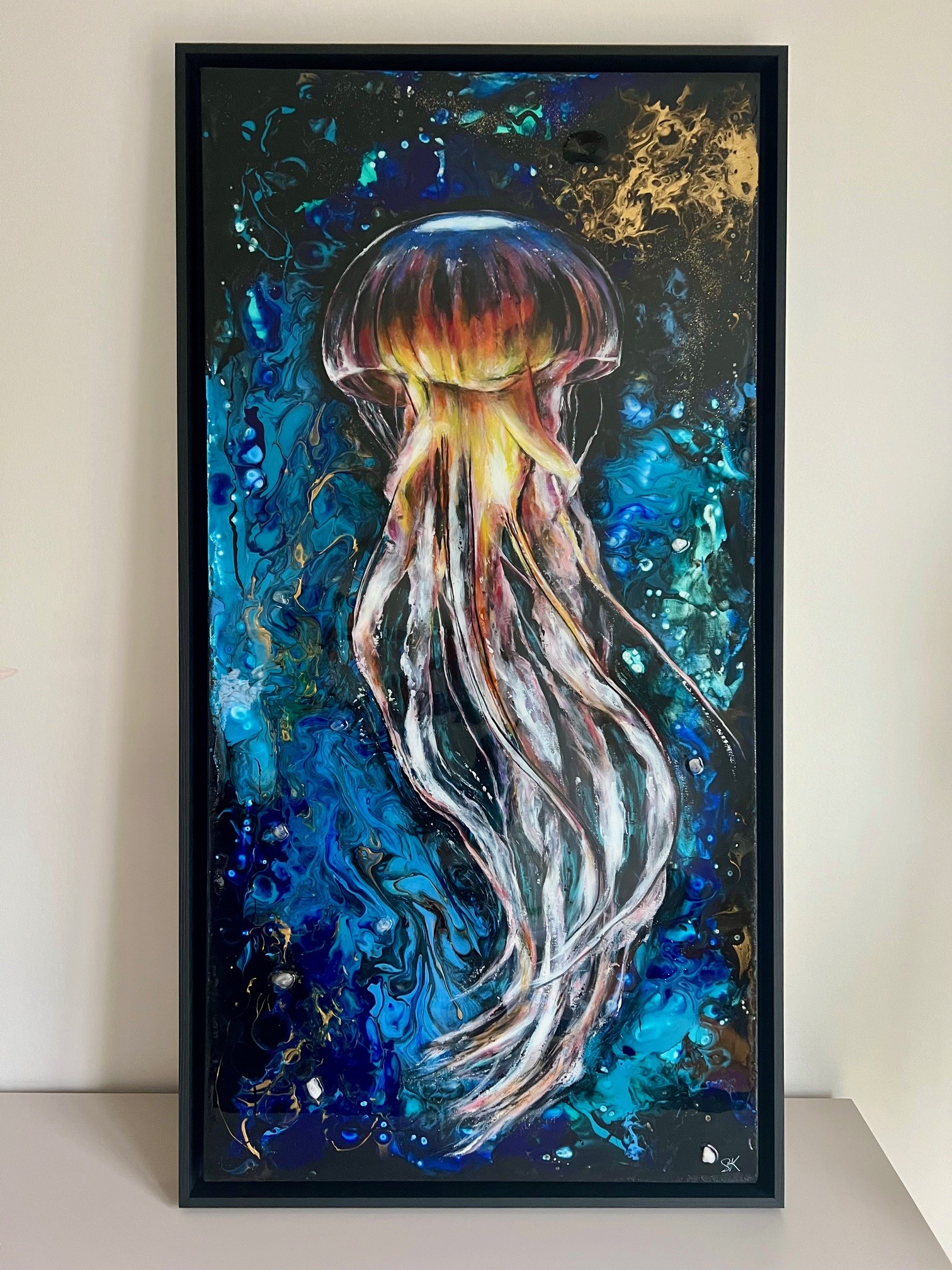 Peinture phosphorescente ! Si la méduse a été éclairée, elle apparaitra phosphorescente dans le noir (verte et bleue)