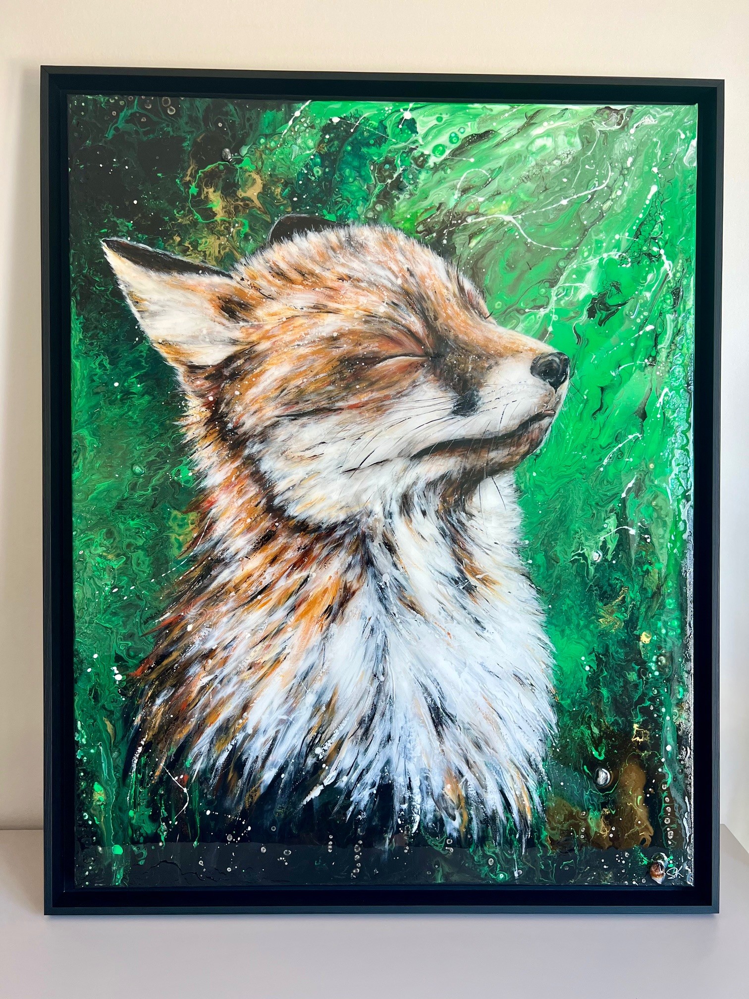 Acrylique sur toile, ajout de morceaux de feuilles d’or.